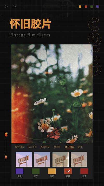 2. **专业级滤镜**:内置多种专业滤镜效果,如黑白、复古、HDR等,一键应用到照片上,让照片瞬间焕发艺术气息。