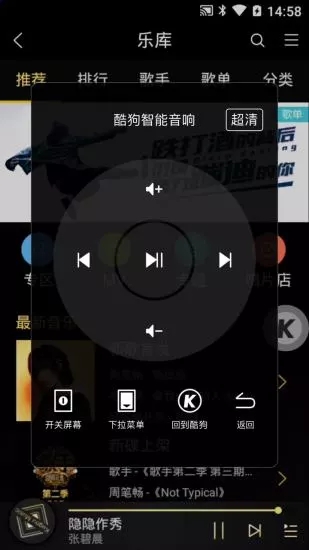 4. 通过手机搜索并播放音乐,或远程控制酷狗音乐播放器的各项功能。