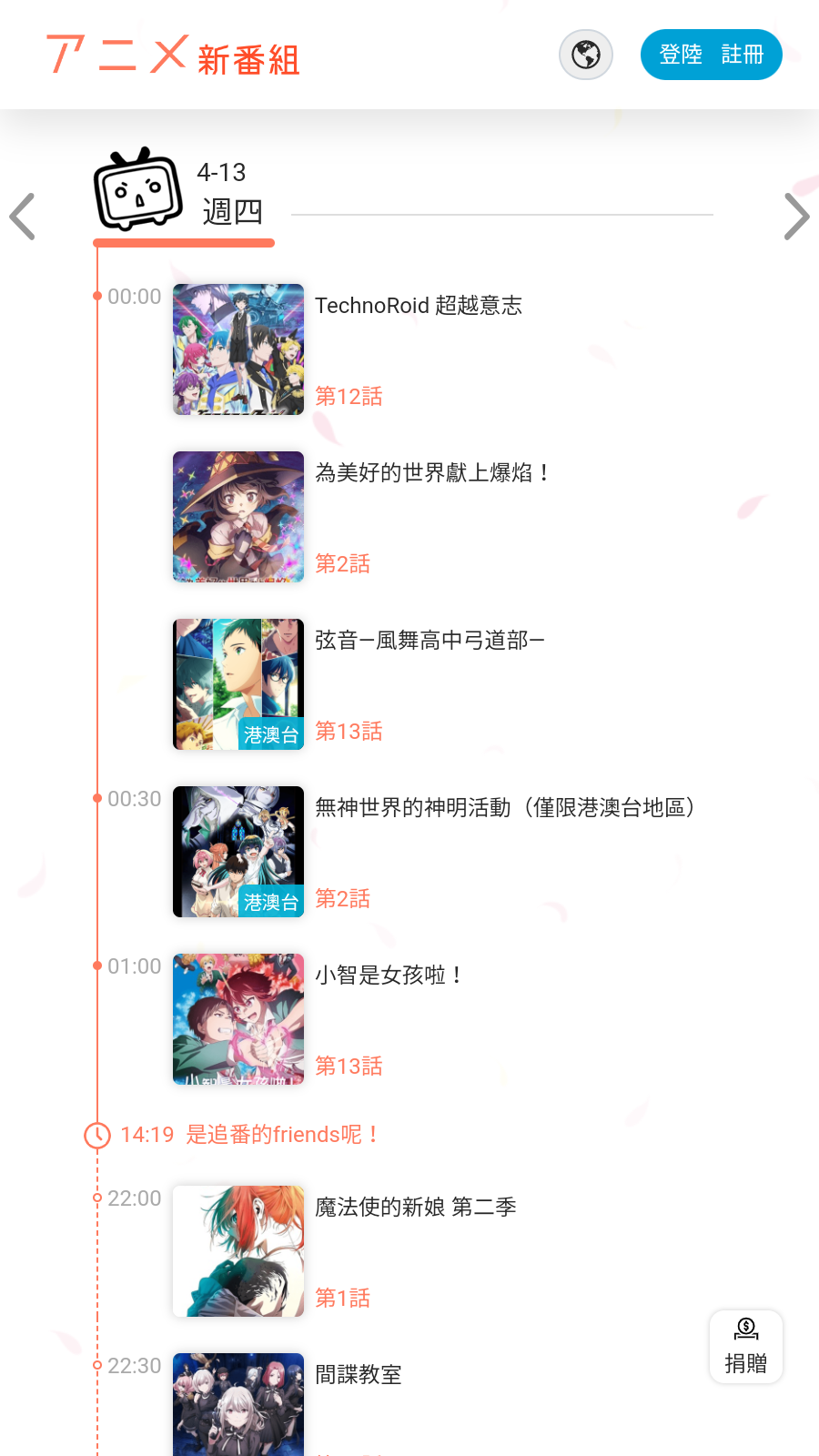 3. 播出时间表,让用户了解每部新番的更新时间。