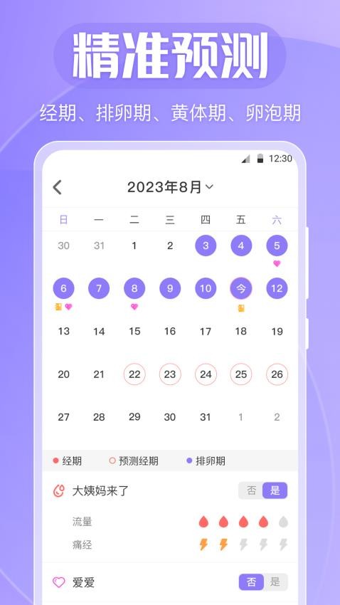 2. 预测提醒:软件根据用户记录的信息,智能预测下一次月经的开始和结束时间,并提供提醒功能。