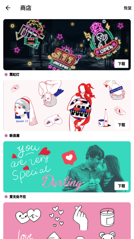 1. 素材丰富:提供大量免费素材,包括滤镜、贴纸、音效等,满足用户个性化需求。