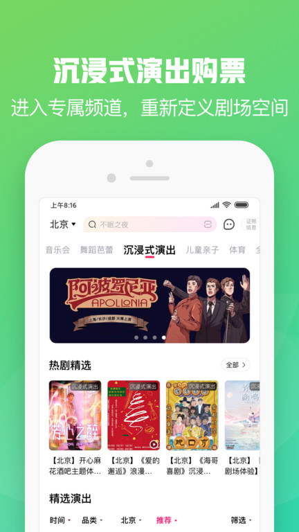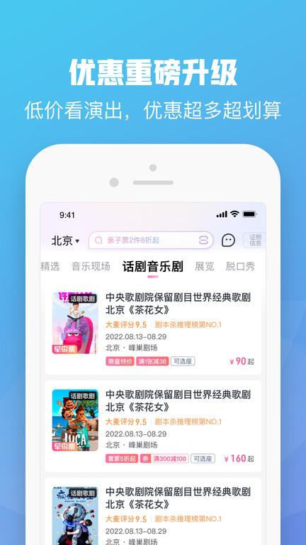 2. 购票与支付:选择心仪的演出,选择座位、票价并完成支付,轻松购票。