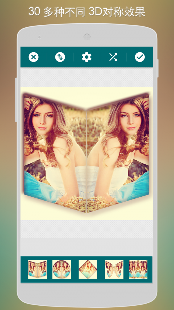 镜面相机安卓版集合了多种拍照功能,包括普通拍照、人像模式、风景模式等,满足用户在不同场景下的拍摄需求。软件内置五十多种不同的镜面效果,用户可以选择本地图片或者通过相机实时拍摄来创建镜面图片,实现上下、左右对称或者是左中右、上中下重复等各种创意效果。
