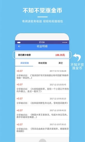互动看点app是一款非常给力的掌上阅读赚钱软件。平台海量热点新闻资讯、搞笑视频、段子,任你在线轻松阅读,一键分享即可赚取零花钱,非常方便,任你想怎么赚就怎么赚!