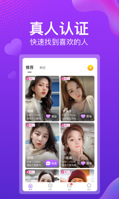 3. 浏览推荐:进入app后,可以浏览推荐的好友列表,通过查看个人资料、照片等了解对方。