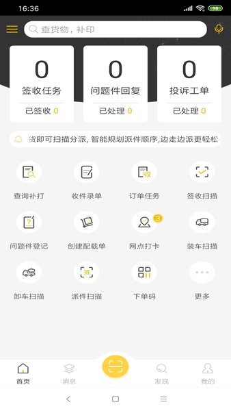 3. 功能选择:根据工作需要,用户可以选择相应的功能模块进行操作,如订单管理、签收管理等。