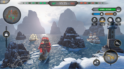 1. 操控船只:玩家通过虚拟按键操控船只的方位,利用地形图和望远镜掌握自身方位和观察军情。