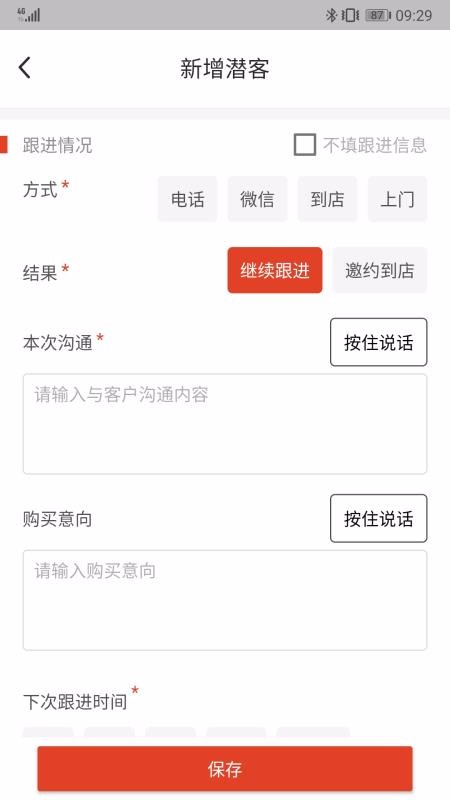 【潜客】登记有意愿购买的客户信息,及时跟进。