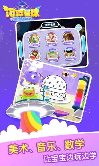 泡泡星球用各种妙趣横生的故事和游戏与宝宝互动,帮助宝宝养成良好的生活习惯,促进宝宝的右脑发育,提高宝宝的情商和智商,让宝宝更好地认识世界。
