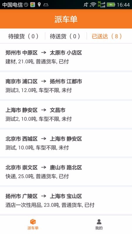 待接货:用户可以在这里查看货主的送货要求,根据自己的情况进行选择;