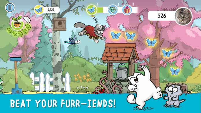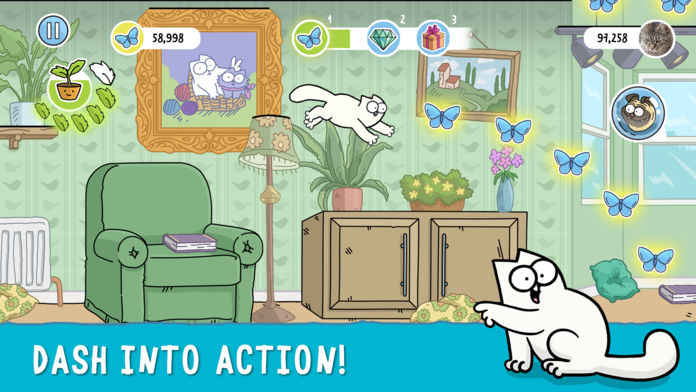 1. 玩家需要控制西蒙的猫在各种场景中跑酷,包括花园、房子和整个社区,通过跳跃、滑行等动作躲避障碍,收集蝴蝶以获取高分。