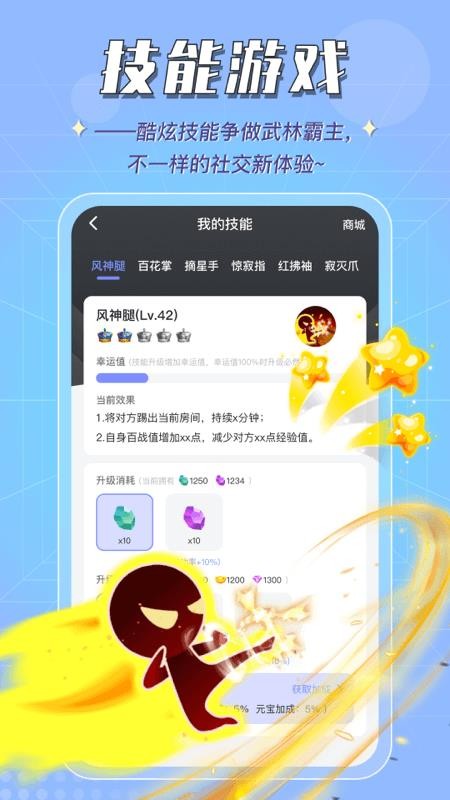 3. 技能游戏:应用内提供了多种技能游戏,如“华山论剑”等,让用户在互动中体验更多的乐趣。