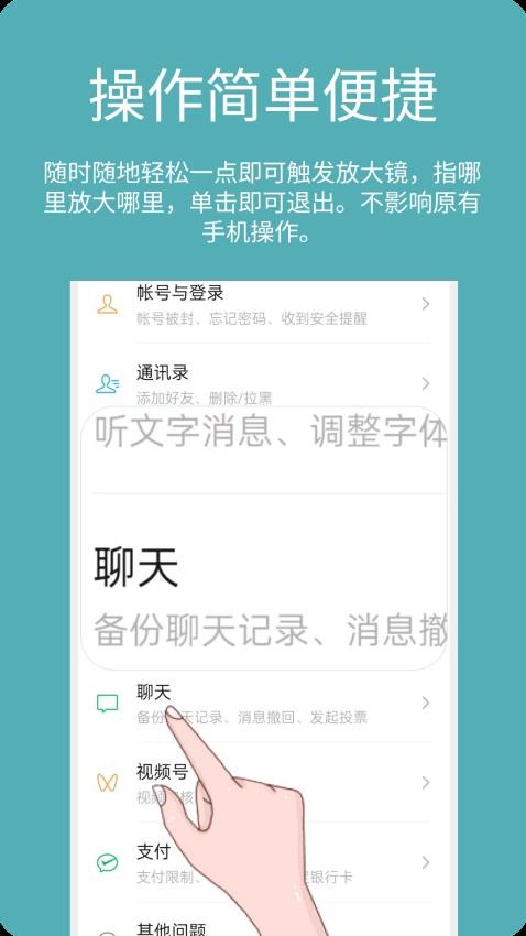 1. 放大功能:软件提供实时、高效的放大功能,支持用户自由选取并放大手机中的内容。