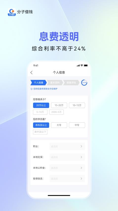 分子借钱通过与多家金融机构合作,为用户提供个性化的贷款方案。用户可以在线申请贷款,并通过智能审核系统快速获得贷款审批结果。软件界面简洁明了,操作便捷,支持多种还款方式,满足不同用户的需求。