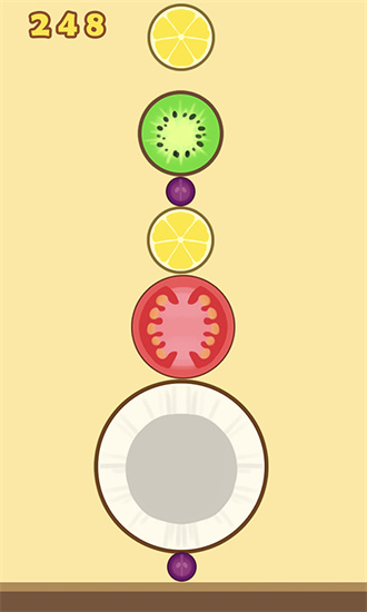 2. 操作方式:点击屏幕以选择希望水果掉落的位置,松开手指后水果会自动垂直下落。玩家需要调整水果的下落位置,使其与相同的水果相撞以进行合成。