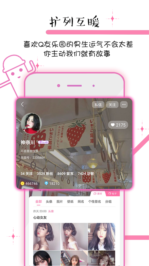 1. 浏览素材:在Q友乐园中浏览各类素材,如头像、签名、网名等,找到自己喜欢的并下载使用。