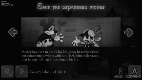 1. 游戏背景:模组的故事围绕米老鼠发现米妮与另一只老鼠(Mr. Slicker)的不忠行为展开,米老鼠因此陷入沮丧并吸毒改变外表,最终在游戏中与玩家进行说唱对决。