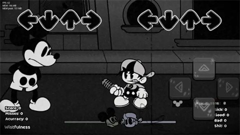 2. 操作方式:玩家通过点击屏幕上的方向键来打击节奏,与米老鼠进行音乐对决。随着顶部图标重合,玩家需及时按下对应方向键以点亮图标,并集满底部绿条以获得胜利。