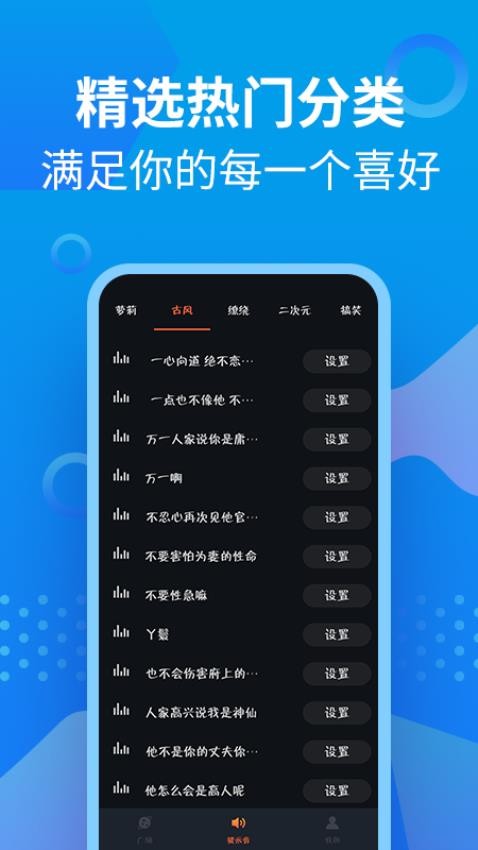 萝莉充电提示音App是一款集趣味性与实用性于一体的手机应用,专为喜欢个性化设置的用户打造。它通过模拟可爱的萝莉声音作为手机充电、低电量、充满电及插拔电源时的提示音,让日常使用手机的过程变得生动有趣,增添生活乐趣。