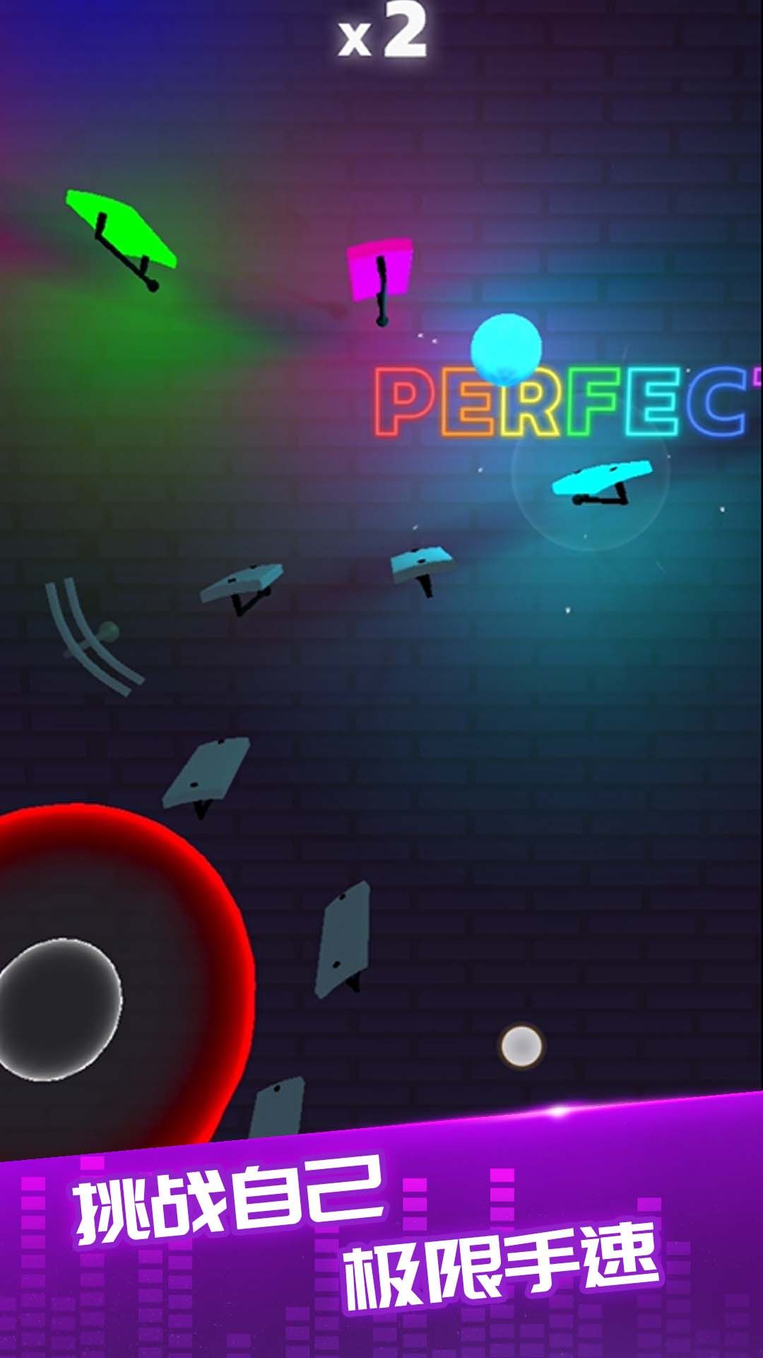 1. 基础操作:玩家需要在圆环变绿时点击屏幕,控制小球球跳跃到下一个音符上。随着关卡的深入,节奏会逐渐加快,对玩家的反应速度和操作技巧提出更高要求。