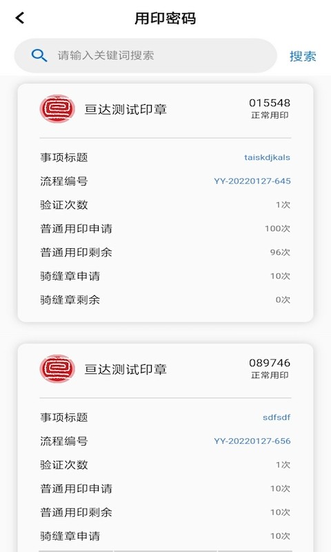 1. 印章管理:支持印章的申请、审批、使用、回收等全生命周期管理。