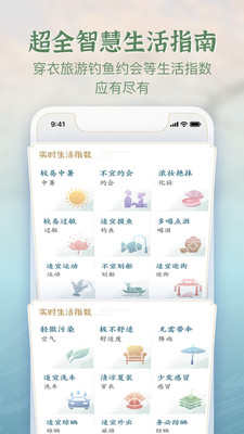 3. 生活指数:提供多种生活指数建议,如空气质量、穿衣建议、紫外线强度等,帮助用户更好地安排日常生活。