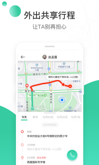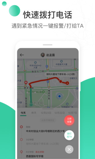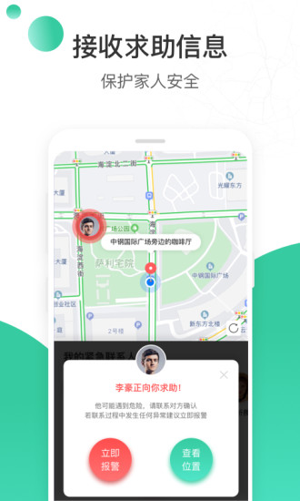 2. 紧急求助功能:遇到紧急情况时,守护对象可一键发送求助信息至预设的紧急联系人,快速获得帮助。
