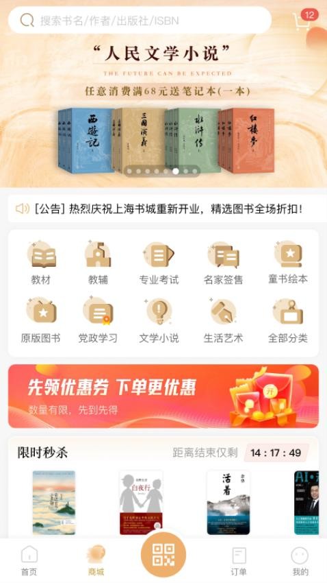 上海书城软件是一款专为书籍爱好者设计的综合性阅读与文化消费服务平台,由新华传媒倾力打造。它融合了线上线下资源,为读者提供便捷、丰富的阅读体验和文化消费服务。无论是寻找最新图书资源、参与文化活动,还是享受文创产品和咖啡轻餐,上海书城软件都能满足您的需求。