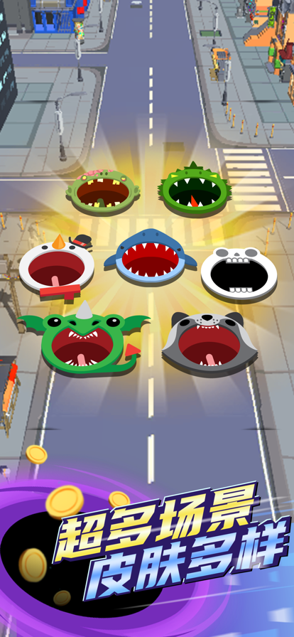 3. 丰富场景:游戏包含多个地图,每个地图都有独特的场景和布局,为玩家提供丰富的游戏体验。从繁忙的都市街道到宁静的公园,玩家可以在不同的场景中自由穿梭,吞噬一切。