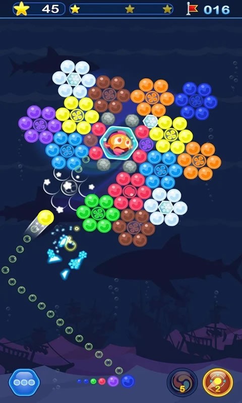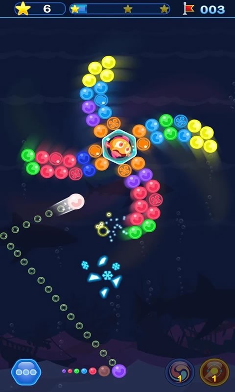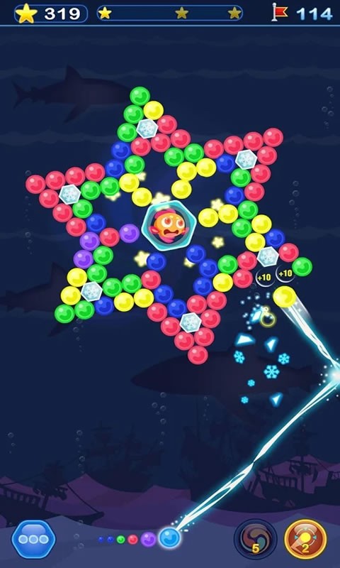 小心那些坏泡泡!发光泡泡会给你电击,而冰冻泡泡会用钻石阵包围每个泡泡。发挥你的聪明才智来解开它们!