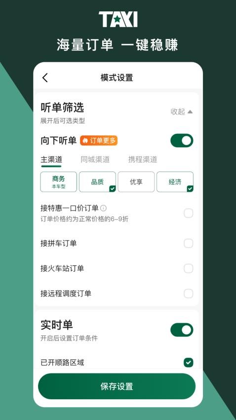 2. 设置听单模式:根据个人需求设置听单模式,如自动接单、手动抢单等。