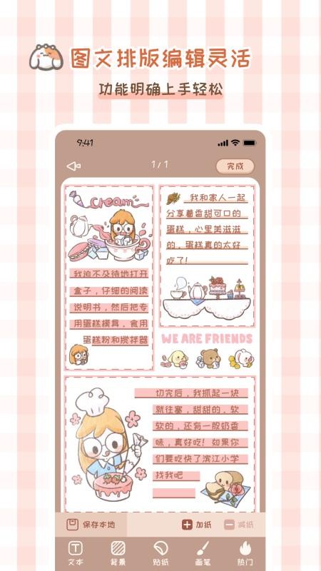 2. 创意贴纸与背景:内置丰富的贴纸库和背景图案,支持自定义编辑,让手账页面更加生动有趣。