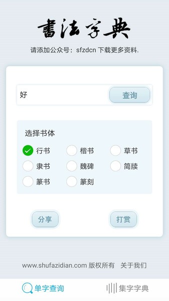 1. 集字查询:用户可根据需要输入文字内容,应用将自动从书法库中匹配并展示多种风格的书法字体,支持单字、多字及整句查询。