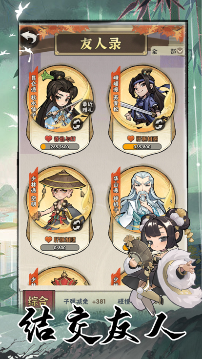 1. 丰富角色:游戏中拥有众多性格鲜明、技能各异的武侠角色,满足玩家的不同喜好和战斗需求。