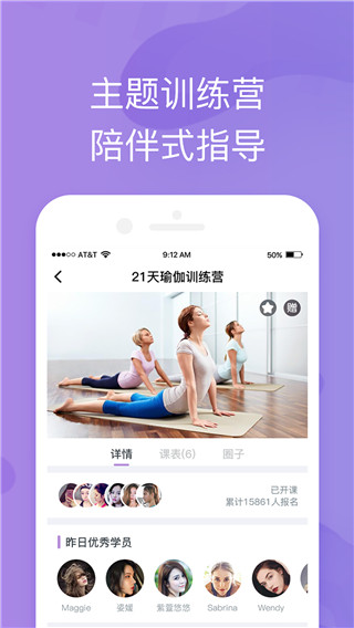 【主题训练营,陪伴式指导】聚集100多位知名瑜伽导师作为技术指导、课程监制,并热心的在社群和后台为粉丝和广大瑜伽爱好者答疑解惑。上线的“21天瘦身训练营”、“气质女人的减压瑜伽课”等课程收获了学员一致好评,主讲老师更是深受学员喜爱。