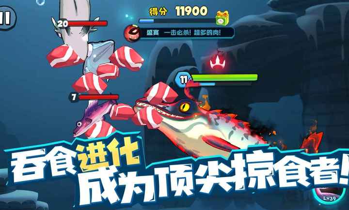 - 玩家需要不断吞噬比自己体型更小的鱼来获取能量和积分,提升等级并解锁新的鱼类形态。