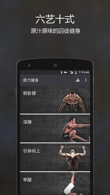 1. 基础六艺:包括俯卧撑、深蹲、引体向上、举腿、桥、倒立撑等经典囚徒健身动作,全面锻炼全身肌肉群。