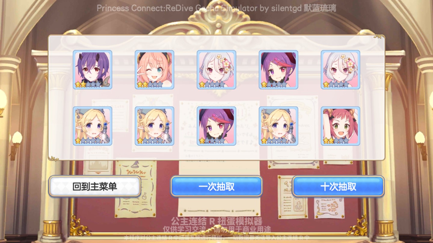 1. 抽卡模拟:完美还原《公主连结》的抽卡概率,让玩家在模拟抽卡中体验真实的抽卡感受。