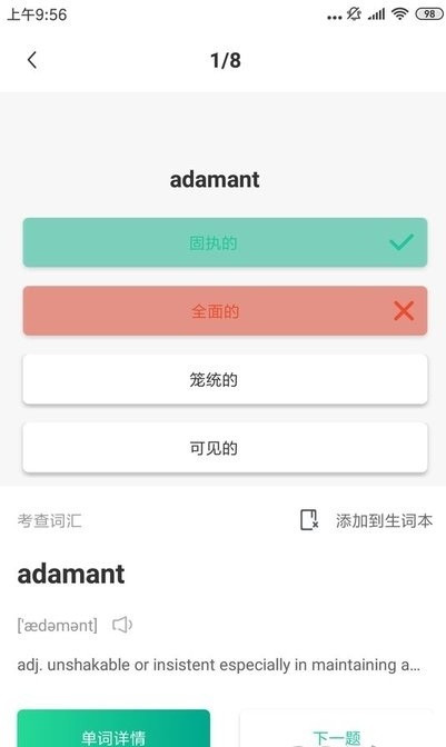 4. 多种学习模式:包括闪卡模式、测试模式、学习统计等,满足不同学习习惯和需求的考生。