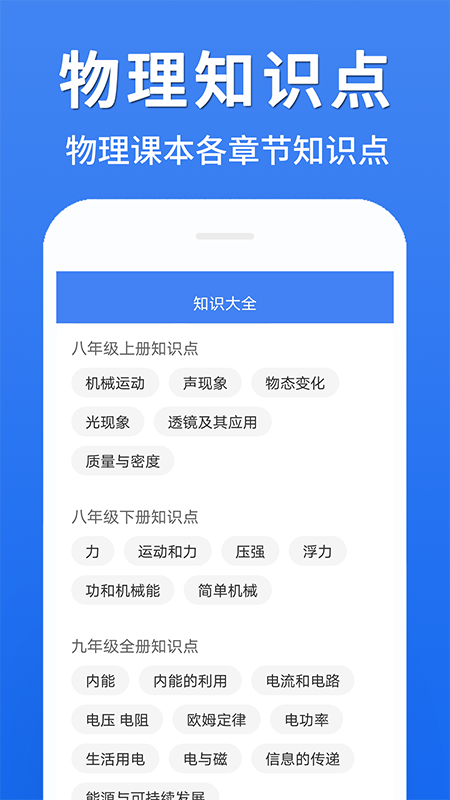 初中物理大全是一款专为初中生设计的综合性学习工具软件,旨在通过丰富的内容、互动的教学方式以及便捷的学习功能,帮助学生全面掌握初中物理知识,提升解题能力和学习兴趣。