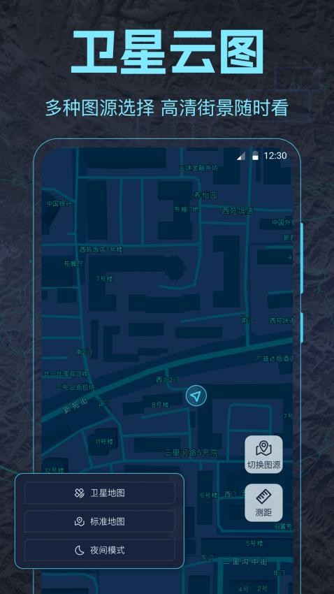 3. 地图浏览:支持多种地图模式切换(标准地图、卫星图、地形图等),以及不同比例尺的地图缩放。