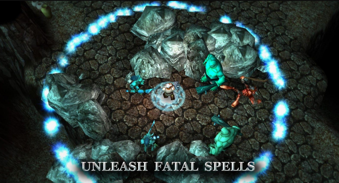 《符文狂暴》(Runic Rampage)是一款以地牢探险为背景的动作冒险手游。游戏采用第三人称的俯视视角,玩家将扮演一名叫做Grimbard的矮人英雄,挥舞着神圣的大锤,释放灵巧的法术,与各种强大的生物作战,展开一场寻找遗失符文石碎片的冒险之旅。相传曾有一枚符文石庇护着矮人一族,但它的消失导致了矮人王国的陷落。玩家的使命是揭开谜团,改变矮人一族的命运。