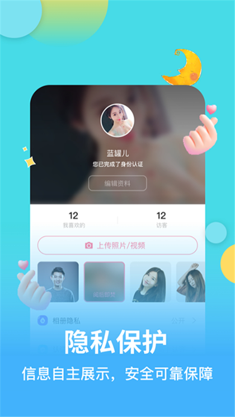 2. 完善资料:登录后,根据提示完善个人资料,包括头像、昵称、年龄、性别、城市、交友目的等。