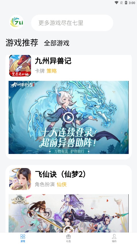 3. 游戏礼包与福利:七里游戏为游戏爱好者提供了丰富的游戏礼包和福利,用户可以通过软件领取各种游戏奖励和资源。