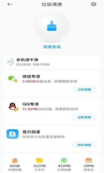 小米垃圾清理通过智能扫描技术,能够全面检测手机中的各类垃圾文件,并提供一键清理功能,让用户轻松完成手机优化。此外,软件还提供应用管理、电池管理、文件管理等多种实用功能,满足用户多样化的需求。