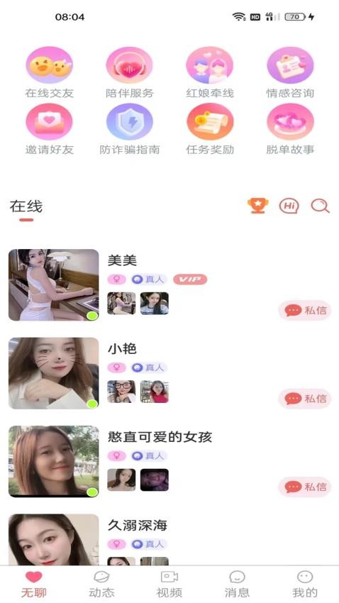 无聊最新版支持手机平台,用户需通过手机应用商店下载并安装。软件界面简洁明了,操作便捷,提供了丰富的社交功能,包括个人资料创建、动态消息发布、照片和视频分享、文本及多媒体消息发送等。此外,还支持语音通话和视频通话功能,让用户的社交体验更加真实和深入。