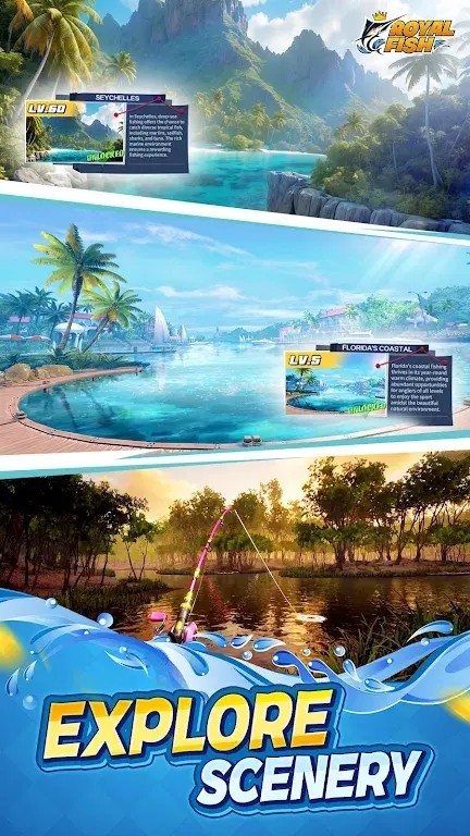 皇家钓鱼模拟器(Royal Fish)是一款深受玩家喜爱的钓鱼模拟游戏,以其真实的环境模拟、多样的钓鱼场景和丰富的鱼类品种为特色。游戏采用精美的3D画面设计,为玩家提供沉浸式的钓鱼体验。无论是钓鱼爱好者还是新手,都能在这里找到属于自己的乐趣。