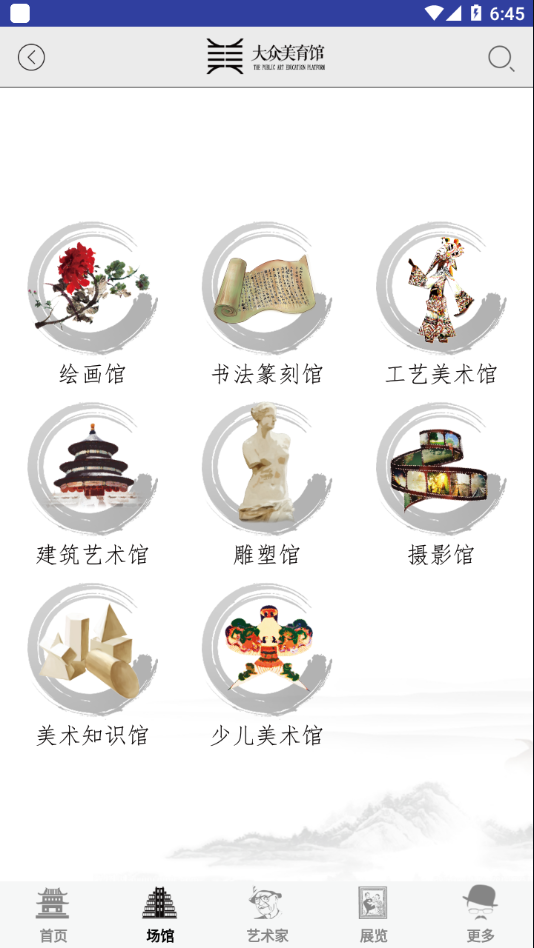 2. 分馆设置:设有绘画馆、书法篆刻馆、工艺美术馆、雕塑馆、建筑艺术馆、摄影馆、美术知识馆和少儿美术馆8个分馆,方便用户根据兴趣进行选择和学习。
