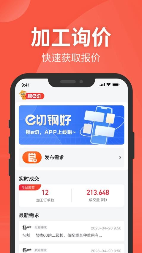 钢e切APP是一个基于云端加工平台的SAAS应用,专注于为用户提供从询价到配送的一站式中板加工服务。通过整合行业资源,它创建了一个开放式的加工平台,既提供自营加工服务,也为第三方客户提供高效、安全的线上加工服务。