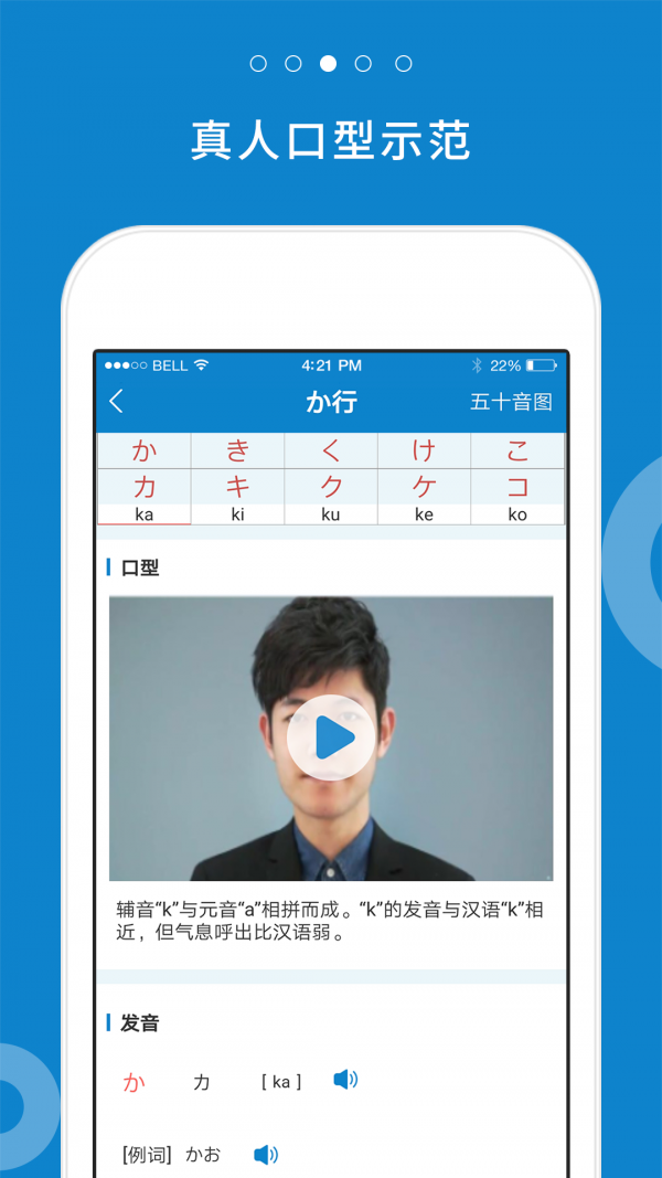 2.学日语不知道怎么发音?真人口型示范,就像面对面的日语私人老师。反复示范,学会为止。